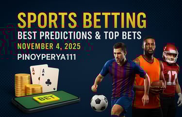 This November 4, 2025, let PINOYPERYA111 be your trusted source for Sports Betting Best Predictions and Top Bets. Whether you’re a seasoned bettor or a newcomer exploring the world of sports wagering, today’s expert insights can help you place more confident, data-driven bets.